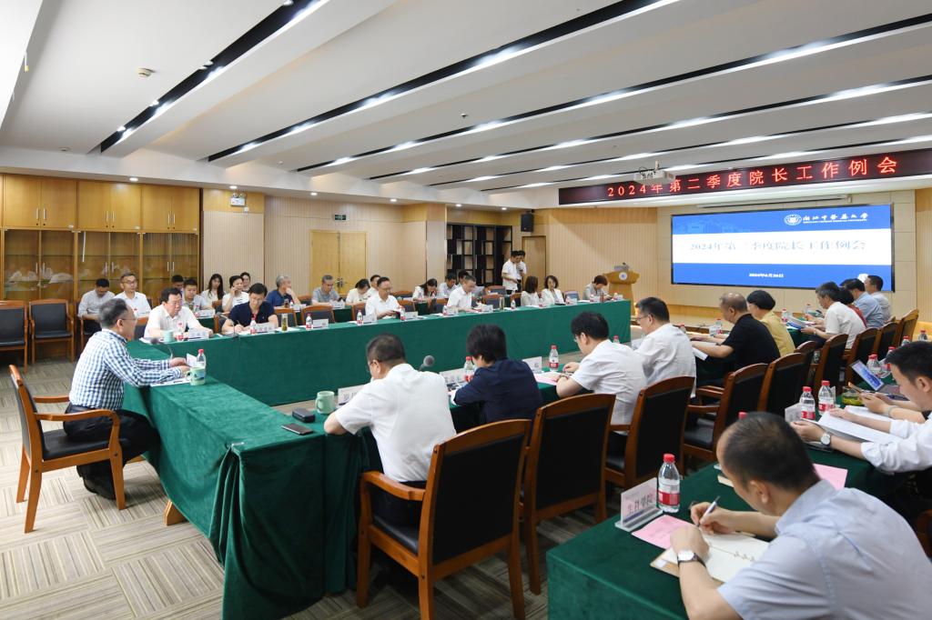 6月26日,学校在滨文校区召开2024年第二季度院长工作例会,专题研究加强研究型医院建设,促进浙中医大系医院高质量发展相关工作。校长陈忠主持会议并讲话,副校长吴承亮、罗伟明、黄建波,校党委副书记黄爱军出席会议。