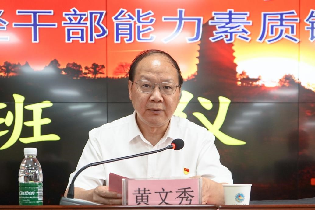 黄文秀指出,延安既是中国革命的圣地,也是新中国的摇篮。党中央和毛泽东等老一辈革命家在延安生活和战斗了13年,书写了彪炳史册的时代伟业,培育形成了延安精神。黄文秀对参加培训的学员们提出三点要求。一是要强化学思践悟,在思想淬炼中锻造过硬素质;二是要严守培训纪律,在恪守规矩中确保学有所获;三是要坚持知行合一,在践行真知中汲取奋进力量。黄文秀希望大家通过培训,进一步传承好、发扬好老一辈革命家和共产党人留下的光荣传统和优良作风,勇当先行者,谱写新篇章,脚踏实地、苦干实干,扎实推动学校高质量发展。