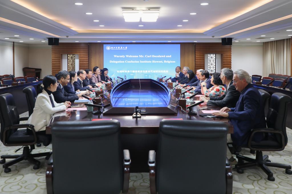 10月22日,比利时西弗兰德省省长卡尔·德卡卢维率领教育代表团一行来校访问。西弗兰德应用科技大学校长弗雷德里克·德胡尔斯特,我校党委书记黄文秀,副校长吴承亮,国际交流合作处(港澳台事务办公室)、国际教育学院、生命科学学院等单位负责人出席座谈会。