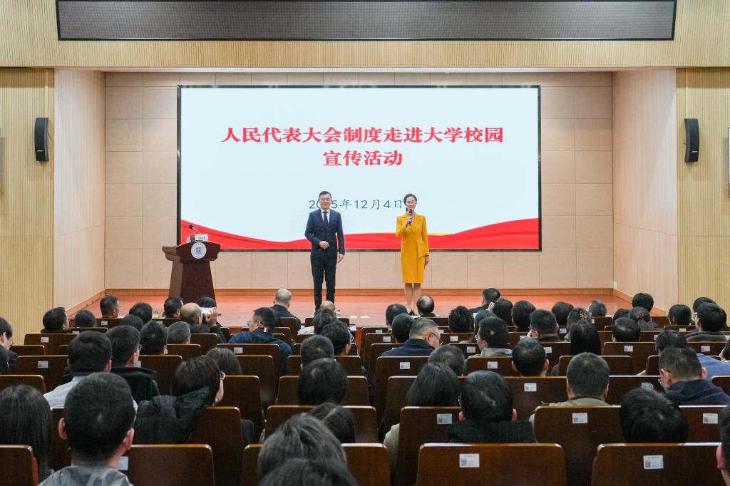 为深入学习贯彻党的二十届四中全会和习近平总书记对学校思政课建设的重要指示精神,12月4日,在第十二个“国家宪法日”来临之际,浙江省人大常委会、浙江中医药大学和丽水市人大常委会联合举办“人民代表大会制度走进大学校园”宣传活动。省人大常委会党组书记、副主任陈金彪出席活动,浙江中医药大学党委书记王斌主持会议。