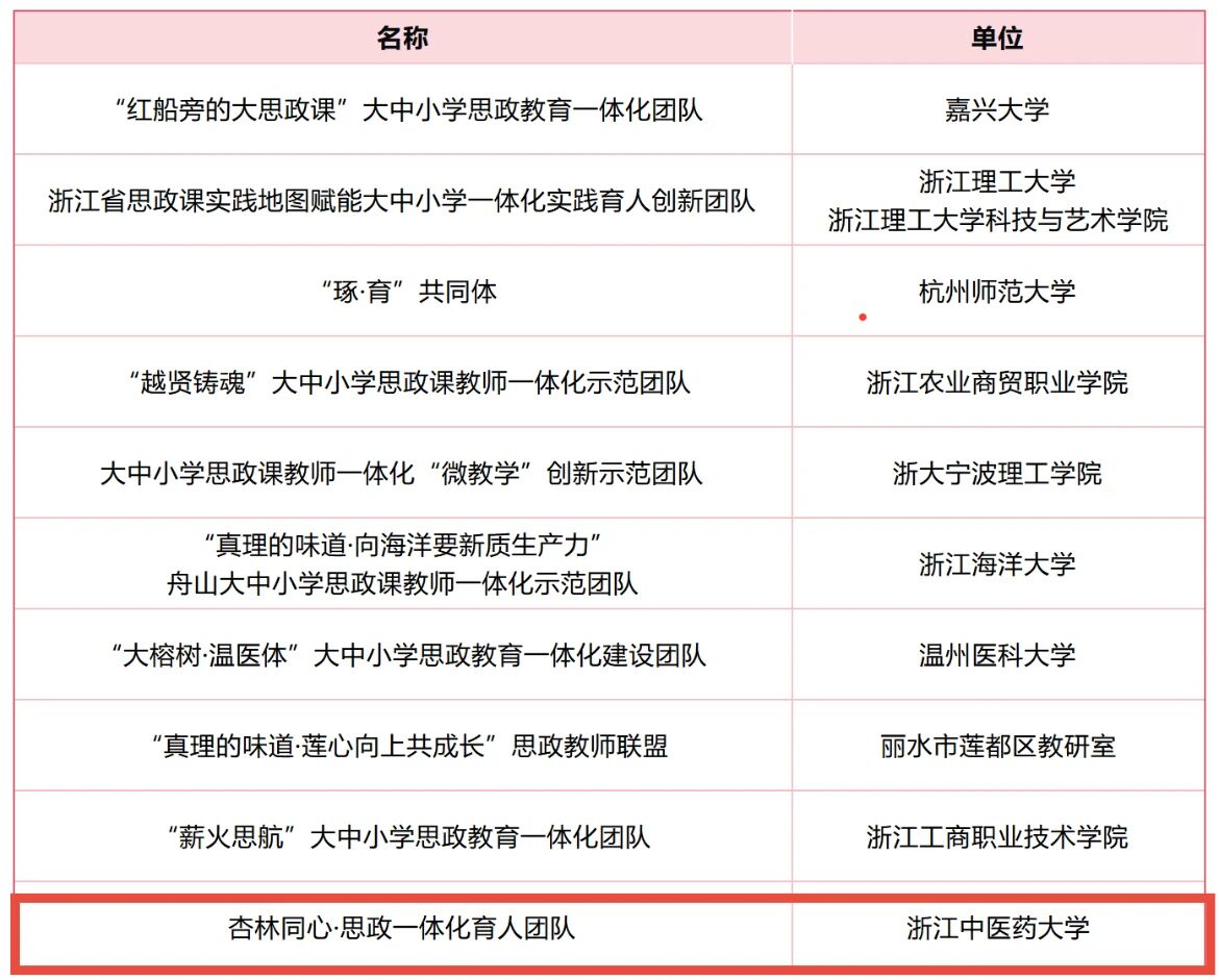 学校一团队入选浙江省“真理的味道”大中小学思政课教师一体化示范团队名单