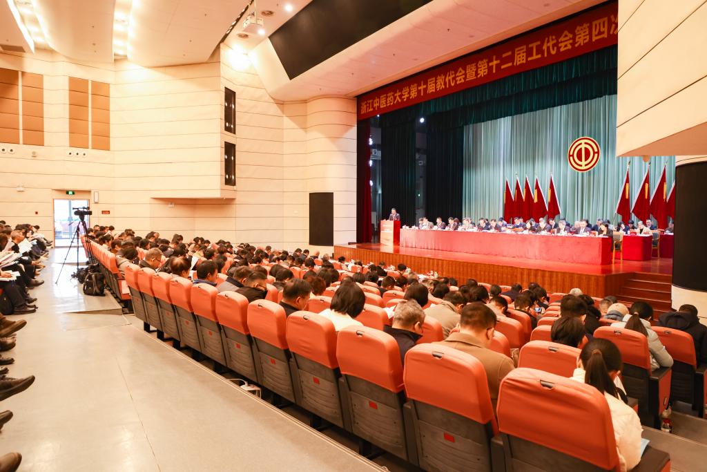 校党委书记王斌作总结讲话。他指出,2025年,全校上下牢记嘱托、感恩奋进,深入贯彻习近平总书记重要指示批示精神,认真落实省委省政府“双一流196工程”部署要求,聚焦一流中医药大学建设目标,党的领导全面加强,立德树人捷报频传,学科科研攀高进位,社会服务彰显担当,人才强校成果丰硕,开放办学打开新局,内部治理优化增效,完成“十四五”圆满收官。学校教代会、工会自觉围绕中心、服务大局,认真履职尽责,密切联系教职工,在维护教职工合法权益、丰富教职工文化生活、动员教职工投身学校改革发展等方面,做了大量扎实有效的工作。他代表学校党政领导班子,向全体教职工在过去一年为学校事业辛勤付出、默默奉献致以崇高的敬意和衷心的感谢。