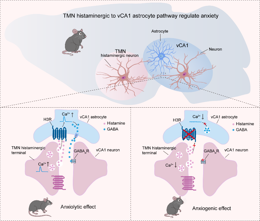 长期以来,焦虑的神经机制研究大部分均聚焦于神经元及其突触可塑性。本工作发现星形胶质细胞及其H3受体是抗焦虑的核心,揭示了从“组胺能输入”到“星形胶质细胞解码”再到“GABA递质输出”调控焦虑的通路。这项研究不仅阐明了一条生理性抗焦虑通路,也为理解神经-胶质互作在精神疾病中的作用提供了全新视角,有望为焦虑障碍的药物研发带来新的突破。