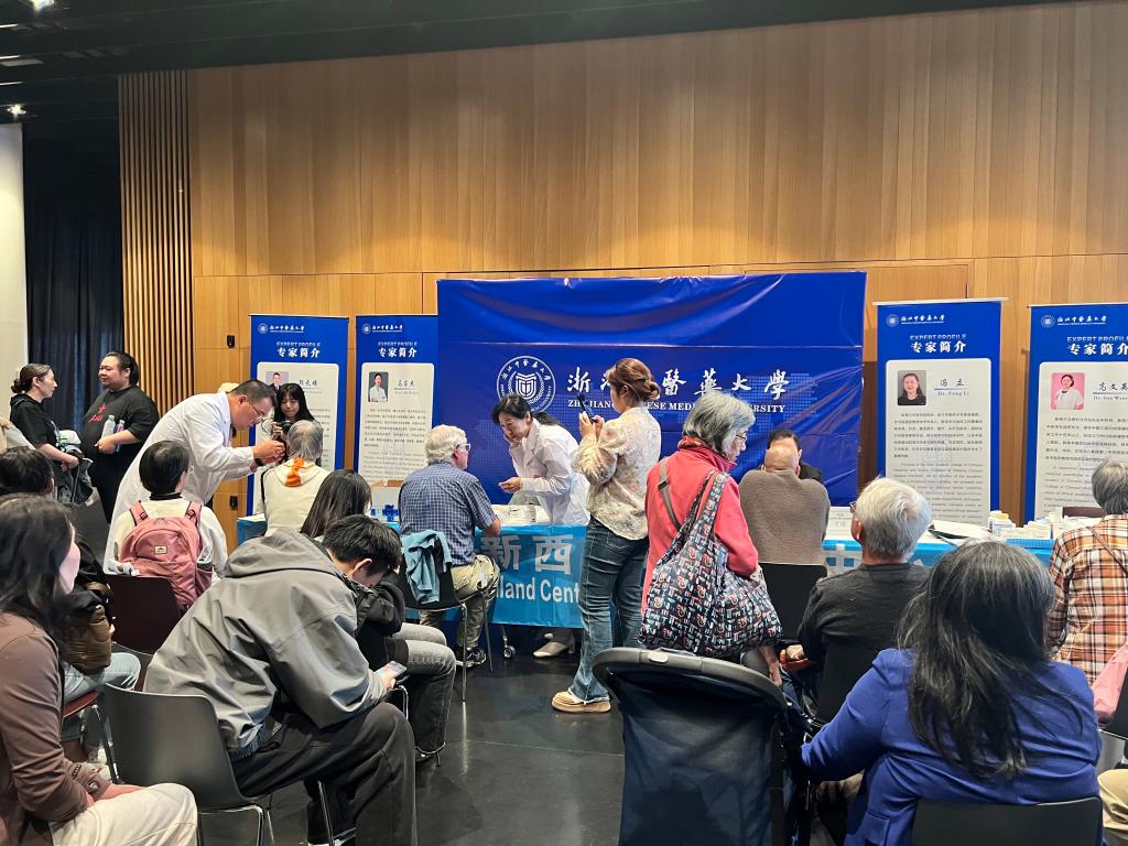 由学校及中国—新西兰中医药中心组成的专家团队,为当地民众提供脉诊、辨证咨询、针灸推拿等服务,受到广泛欢迎。数百名参与者现场体验八段锦、耳穴压豆、中药香珠制作及养生花茶品鉴等项目,切身感受中医药“简、便、验、廉”的独特优势与现实价值。