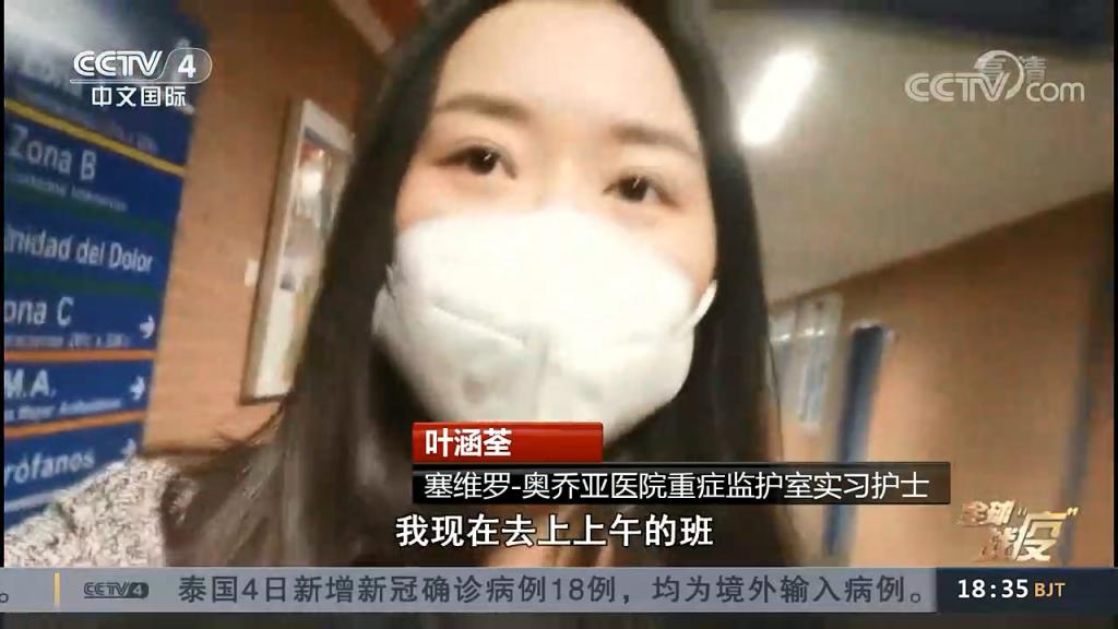 5月4日,CCTV中文国际频道《晚间新闻》栏目以将近4分钟的篇幅,深度报道了我校留学生叶涵荃在西班牙的抗疫故事。