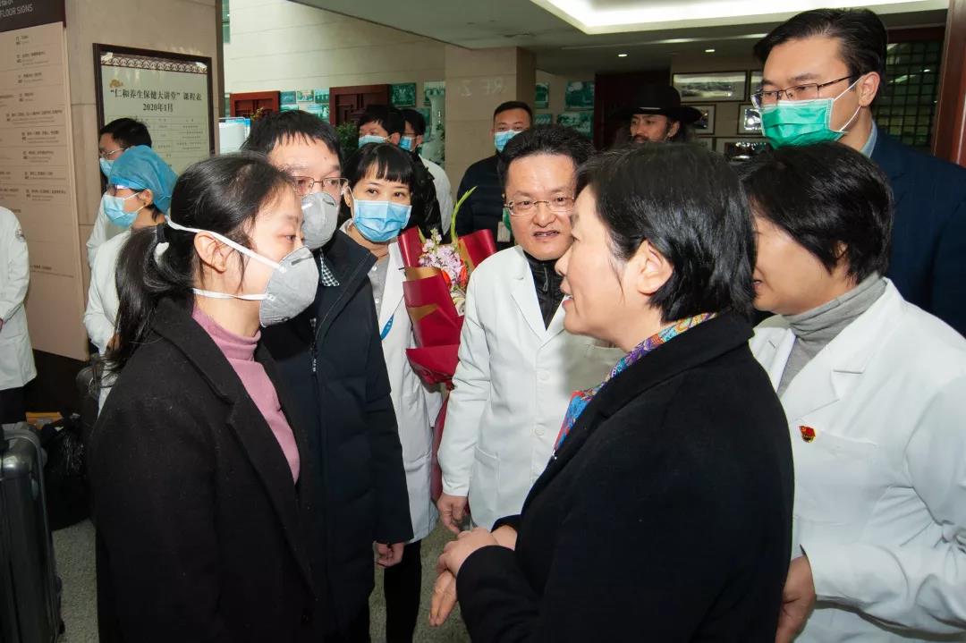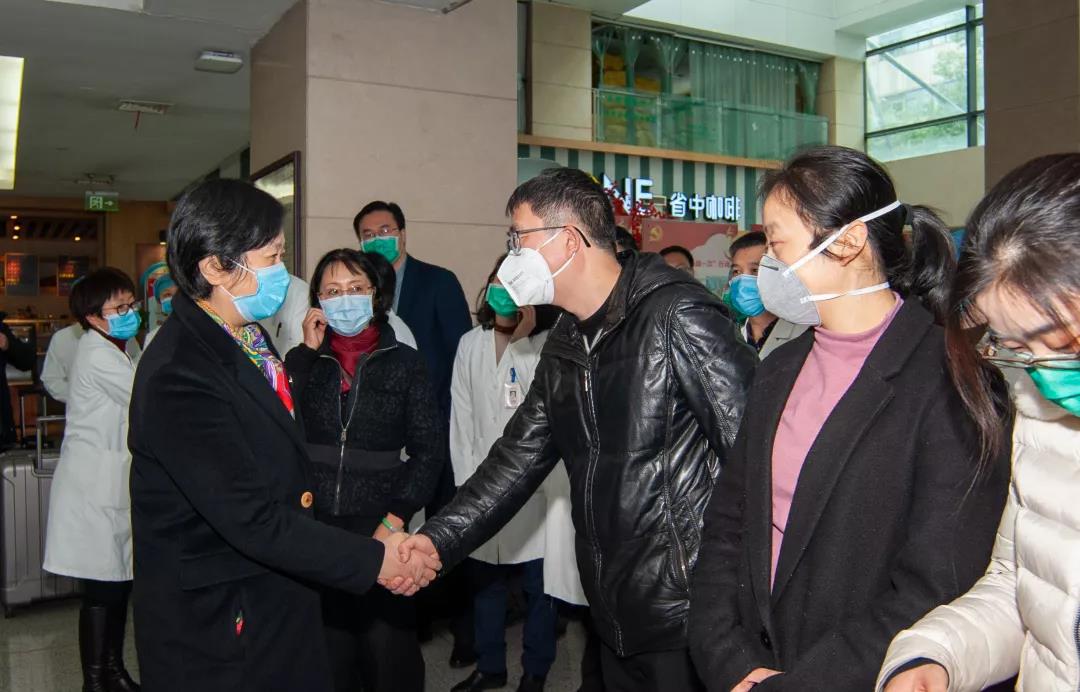 校党委书记孙秋华为这四位“最美逆行者”送行。仪式上,孙秋华书记代表学校党政班子对四位英雄主动请战的无私奉献致以崇高敬意和衷心感谢,对医院防控一线的工作人员表示亲切的慰问和新春的祝福;她又叮嘱奔赴武汉的医护人员要一切行动听指挥,以高度负责的态度履行好各自职责,全力以赴做好医疗救治各项工作,展现医院的风采、浙江的风采,展示医护人员的良好形象。完成任务,不辱使命。她强调所有出征者,按院感规范做好防护工作,医院要做好坚强的后盾,为医护人员解决好后顾之忧!期待各位不辱使命,出色完成任务,平安凯旋、顺利归来!