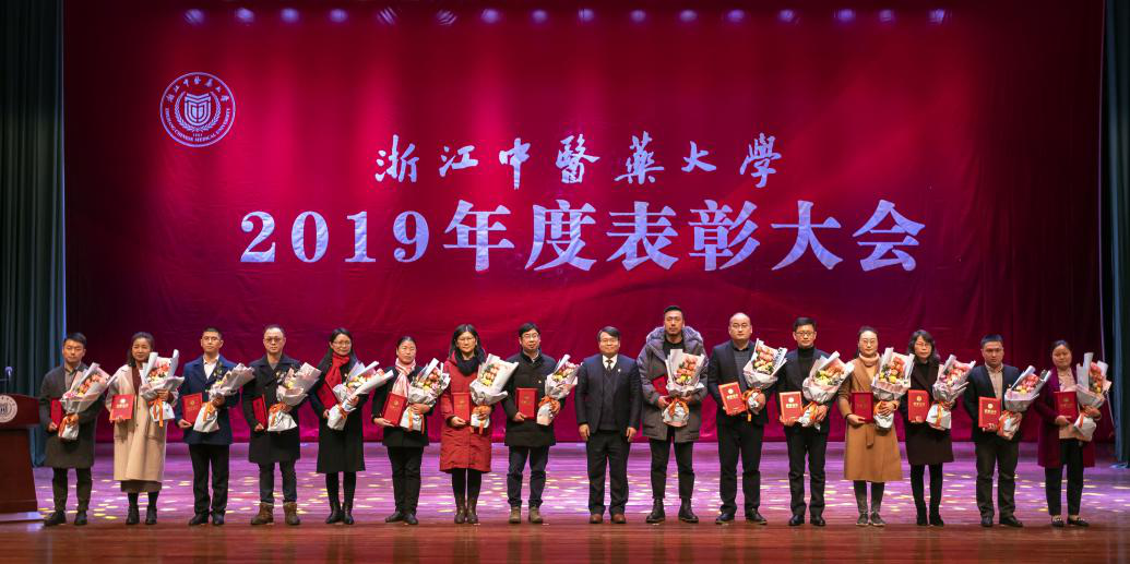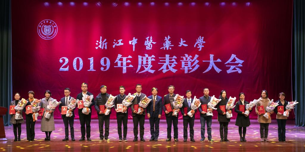 2019年全校上下以新中国成立70周年和学校建校60周年为契机,对标一流、团结一心,在人才培养、学科建设、科学研究、师资队伍建设、对外交流、社会服务等各方面取得了长足的进步和可喜的成绩, 迈入了内涵建设的新时代、形成了奋发有为的新气象。一年来,学校涌现出一大批爱岗敬业、敢于担当、务实创新、无私奉献的先进集体和个人,为我校各项事业发展注入了改革动力、创新活力和发展合力。表彰大会号召全校教职工在新的一年里继续开拓创新,锐意进取,以受表彰的集体和个人为榜样,进一步对标“双一流”,只争朝夕、不负韶华,全力推动学校再上新台阶、实现新跨越,奋力谱写浙江中医药大学的美好新篇章!