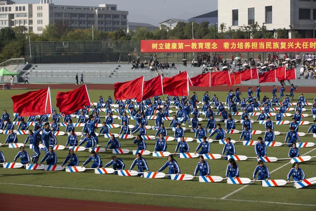 整齐划一,激情澎湃的武术表演中,每一个动作都展示着浙中医大的强大力量。白蓝交汇里,他们的舟板上升,下翻,旋转,平移,展示了我们浙中医大人顽强拼搏,不惧风浪的品格。