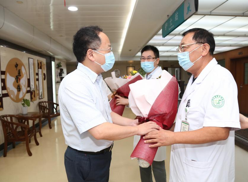 8月19日上午,在第四个“中国医师节”当天,校党委书记黄文秀,校长陈忠,副校长吴承亮、温成平,校党委委员、办公室主任黄建波到附属医院走访慰问一线医护工作者,向他们表达节日的祝福。