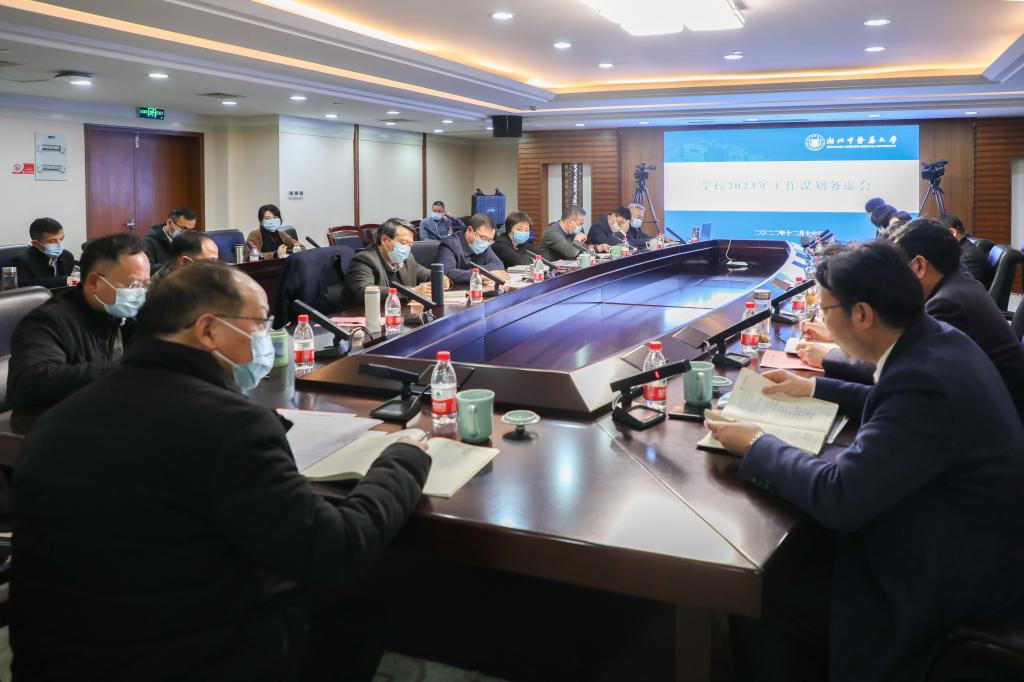 12月16日,学校在滨文校区召开2023年工作谋划务虚会。校党政领导班子成员、全体中层正职参加会议。会议由校党委书记黄文秀主持。会议通过线上线下相结合的形式进行。