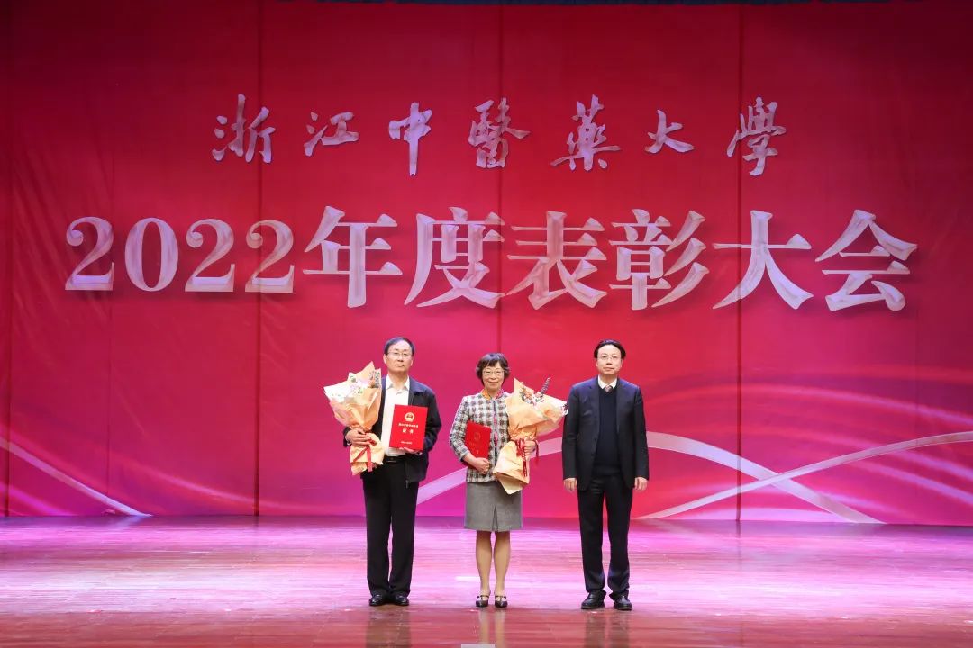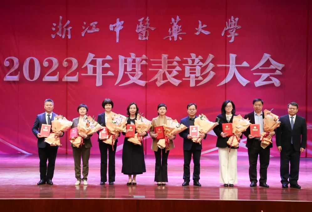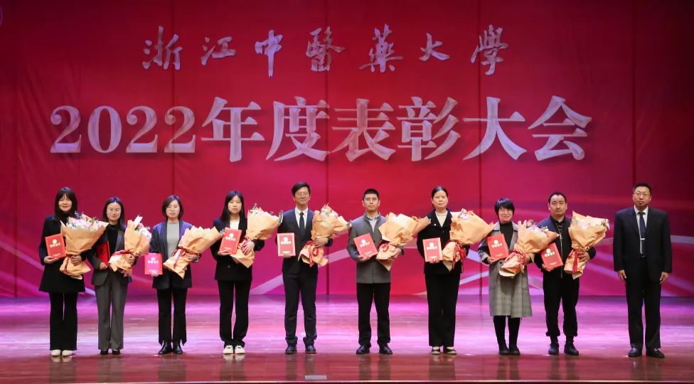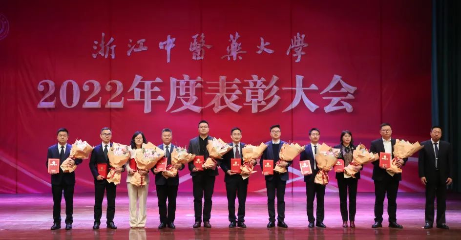 2022年,全校上下紧紧围绕建设一流中医药大学主题主线,聚焦“四个争当”,全面实施“八个一流”工程,勇扛新使命、奋进新征程,交出了一份高质量发展建设一流中医药大学的高分报表。一年来,学校在人才培养、学科建设、科学研究、师资队伍、社会服务等各方面取得了长足的进步和可喜的成绩, 涌现出一大批爱岗敬业、敢于担当、务实创新、无私奉献的先进集体和个人。表彰大会上,校领导为各类先进个人和集体颁奖。