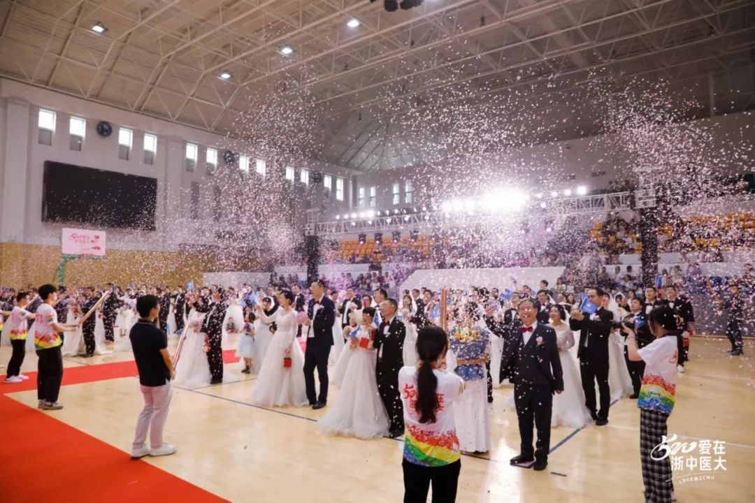 5月20日,53对不同年龄段的校友伉俪在滨文校区参加了学校校友办组织的“520爱在浙中医大”校友集体婚礼活动。校党委书记黄文秀,校友会会长方剑乔,副校长吴承亮、温成平、黄建波,学校相关部门(学院)负责人、教师代表出席活动。