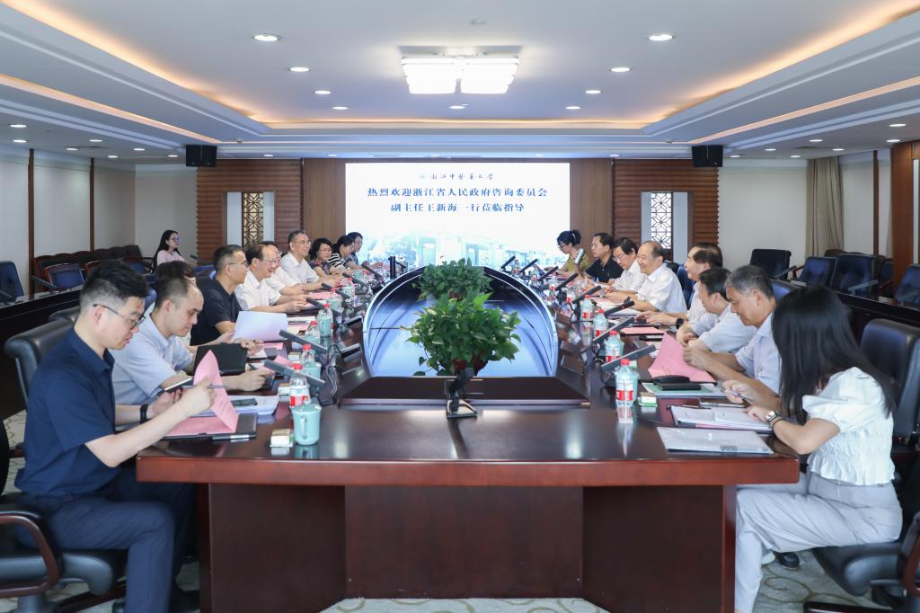 在听取汇报后王新海对我校近年来取得的各项成绩表示肯定。王新海指出,浙江中医药大学是一所有特色、有底蕴、有实力、有潜力的高校,希望学校发挥中医药特色优势,集聚优质资源做好加减法,树立国际视野,提升中医药文化传播力度,加强富春校区建设和校企合作,全面提升办学水平,推动学校高质量发展。王新海从排名前移、特色打头、盘活资源、创新模式、广聚资金等方面对学校提出了具体建议。
