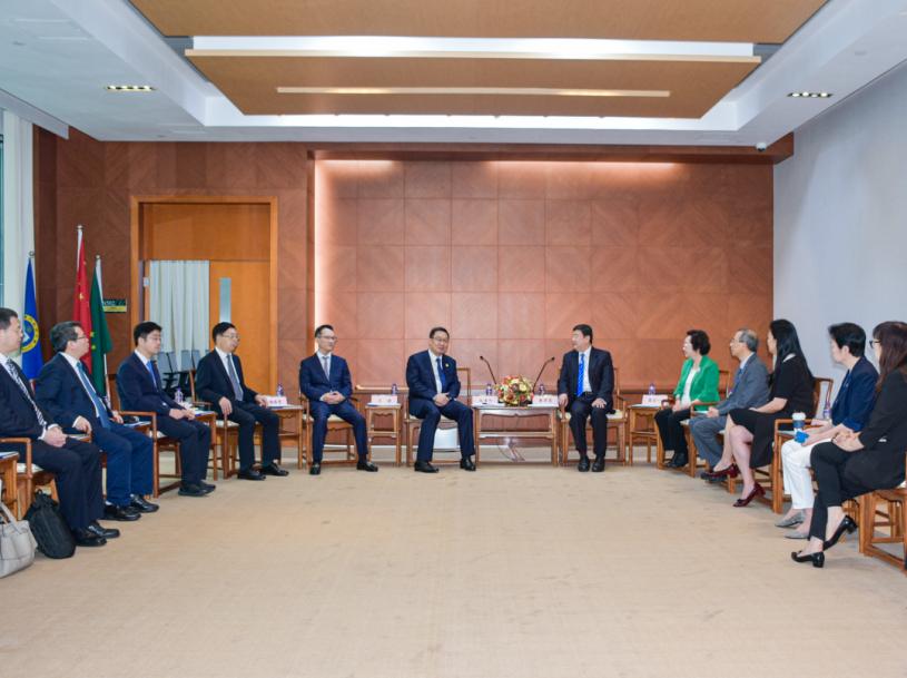 在澳门科技大学考察交流时,温成平介绍了浙中实验室建设发展概况及在中医药与大健康领域的建设目标。澳门科技大学校监廖泽云、中药质量研究国家重点实验室负责人姜志宏等表达了合作意愿。温成平一行还前往澳门大学中医药学院调研座谈,实地参观了澳门大学的国家重点实验室。