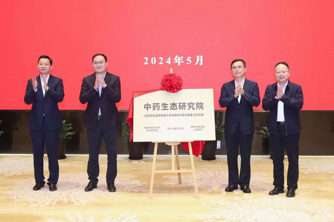黄璐琦、洪湖鹏、陈忠、王剑峰共同为中药生态研究院(道地药材品质保障与资源持续利用全国重点实验室)揭牌。