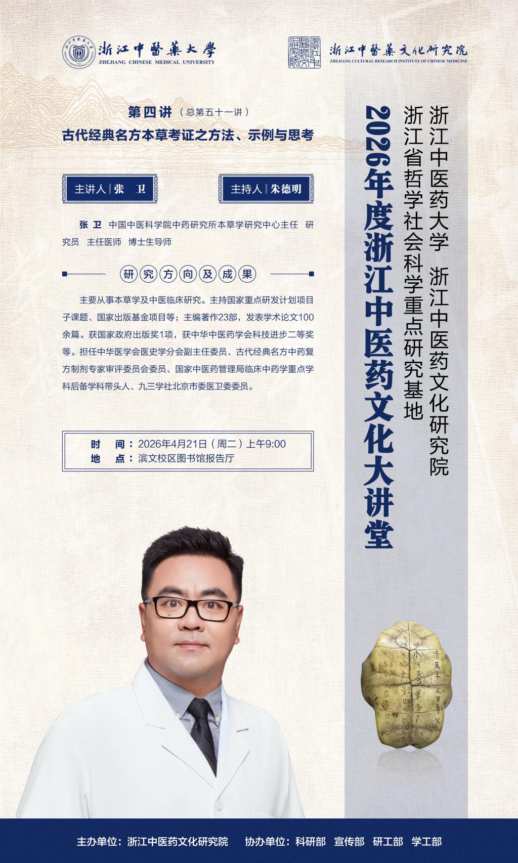 浙江中医药文化研究院浙江中医药文化大讲堂第五十一讲预告