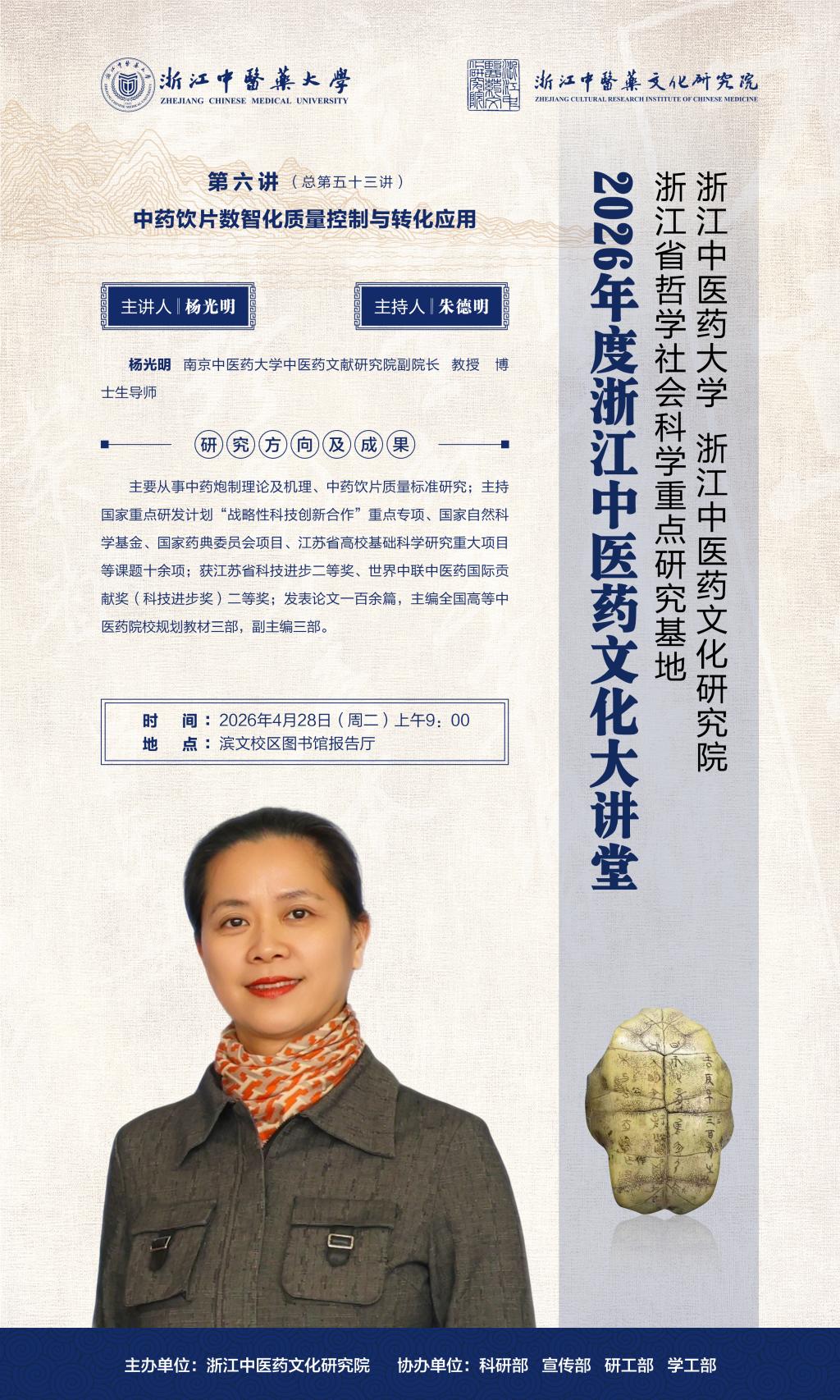浙江中医药文化研究院浙江中医药文化大讲堂第五十三讲预告