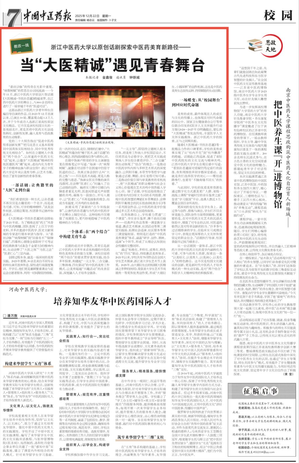 浙江中医药大学以原创话剧探索中医药美育新路径——当“大医精诚”遇见青春舞台