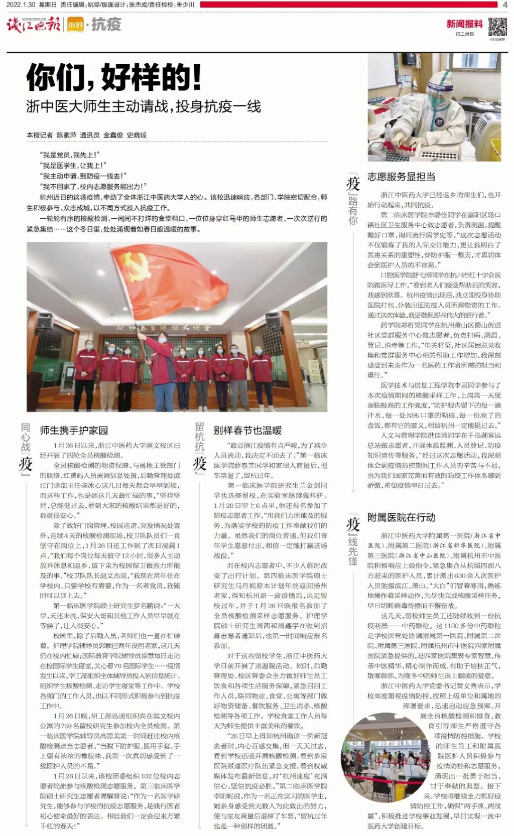 杭州近日的这场疫情,牵动了全体浙江中医药大学人的心。该校迅速响应,各部门、学院密切配合,师生积极参与,众志成城,以不同方式投入抗疫工作。