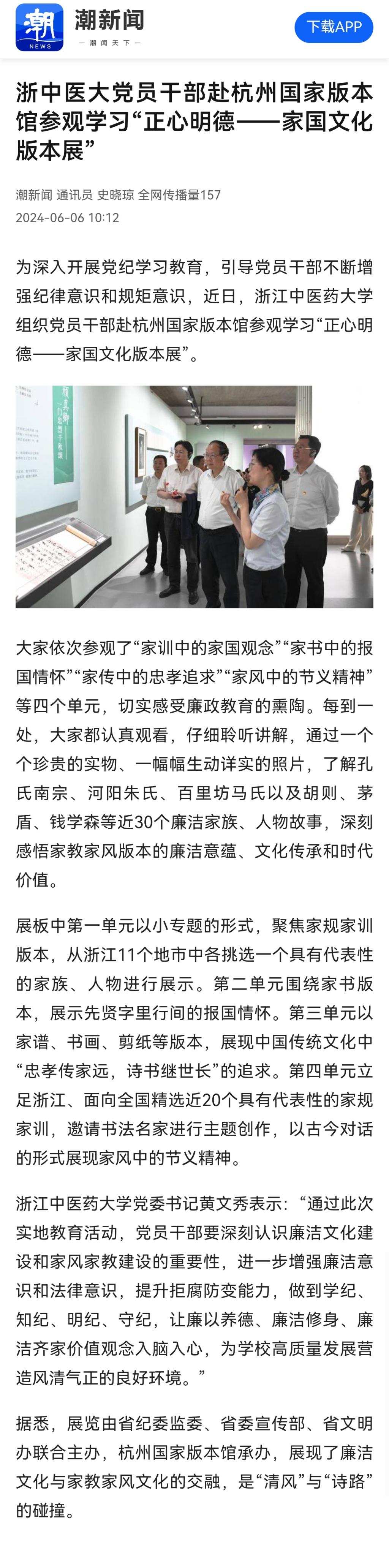 浙中医大党员干部赴杭州国家版本馆参观学习“正心明德——家国文化版本展”